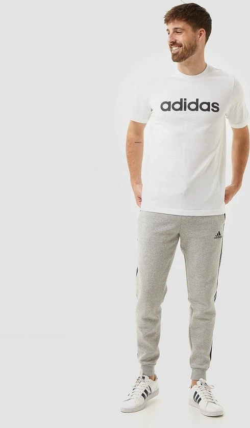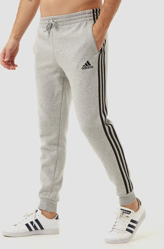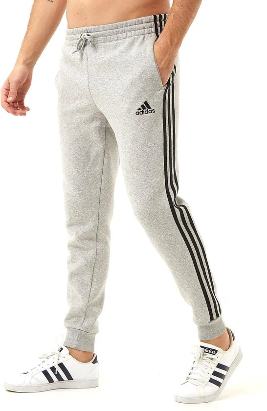 De grijze Essentials 3-Stripes Tricot joggingbroek voor heren is supercomfortabel en staat ook nog eens goed bij je sportieve outfit. De elastische tailleband houdt de broek op zijn plek en voorkomt opkruipen en afzakken. In de steekzakken kun je je essentials eenvoudig opbergen.
