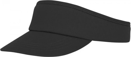 Zwarte sportieve zonneklep petje voor volwassenen. Deze zwarte zonneklep heeft een gebogen klep en is geschikt voor een hoofdmaat van ca. 58 cm. De hoofdmaat is verstelbaar met klittenband aan de achterzijde.