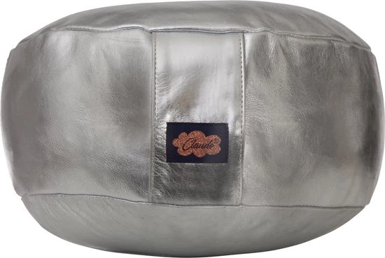 Leren pouf / vloerkussen / yoga of meditatie kussen SILVER. Afmetingen: 33 x 13,5 cm, merk Clauds. Aparte binnenzak met bio organische boekweit kaf vulling (navulbaar via rits onderkant). Ook leuk als kinder pouf of als decor stuk in uw huis.