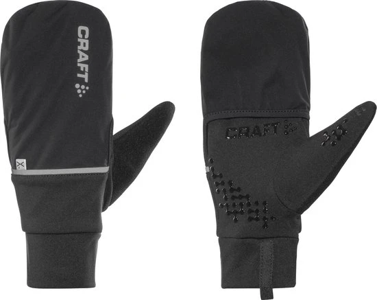 De Craft Hybrid Weather Handschoen heeft de volgende eigenschappen: De Craft Hybrid Weather Glove voor volwassenen is een set van een paar zachte, warme handschoenen, geschikt voor hardlopers en andere buitensporters. De handschoen is gemaakt van polyester met spandex en voelt zacht en comfortabel aan, mede door de fleece binnenzijde. De handschoen heeft gewone vingers, maar kan door de cover makkelijk tot een want getransformeerd worden. De handschoen is voorzien van een zachte, warm aanvoelende binnenkant en een Windblocker beschermlaag. Hierdoor wordt koude wind tegengegaan en transpiratievocht snel afgevoerd. Deze hardloophandschoenen zorgen voor een versnelde afvoer van transpiratievocht. In de handpalm zijn silicone details aangebracht, die zorgen voor veel grip. De wijsvinger is geschikt voor het bedienen van een smartphone.