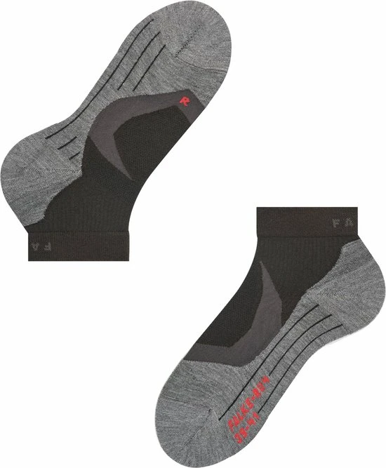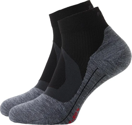 - Ademende joggingsokken met korte schacht, zacht materiaal, Coolmax-vezel en lichte wattering. Het netmateriaal zorgt voor een optimaal vochttransport en is ademend. De sokken zijn versterkt bij de tenen en de hiel en bieden een kreukvrije pasvorm