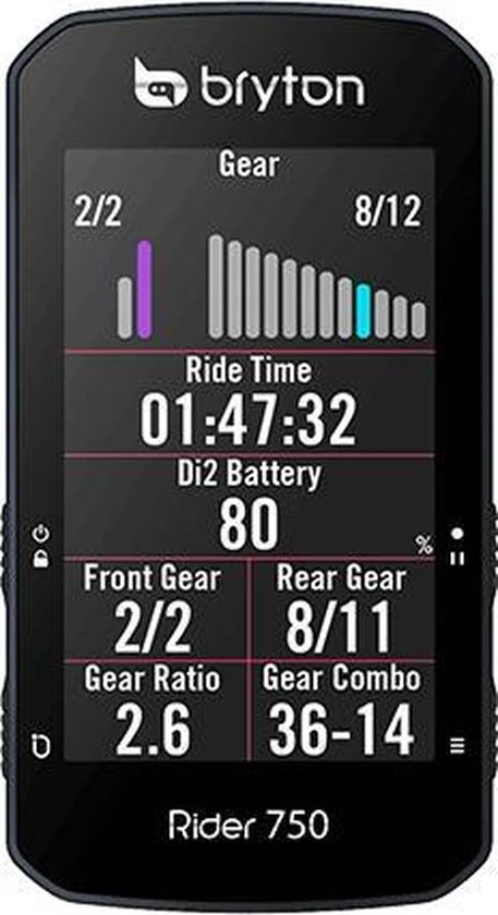 | Verpakkingsinhoud | •, Bryton, Rider, 750, fietscomputer, •, Bryton, stuurhouder, standaard, +, Race, Mount, •, Veiligheidskoord, •, Snelstart, gids, •, USB, kabel |