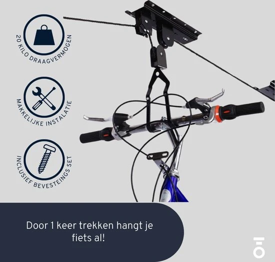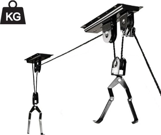 Het opbergsysteem voor fietsen is eenvoudig te monteren en heeft een draagkracht van 20 kg! Hiermee kan jij elke fiets, kano, dakkoffer of surfplank netjes opbergen en aan je plafond hangen zonder dat jij je zorgen hoeft te maken over de stabiliteit!