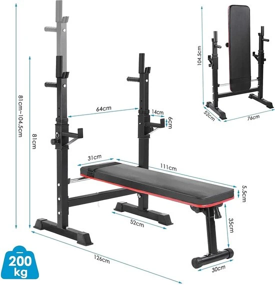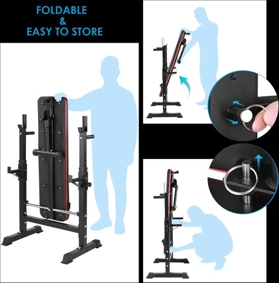 ✔ Opvouwbaar: De halterbank is ruimtebesparend inklapbaar voor thuis of onderweg.
