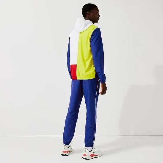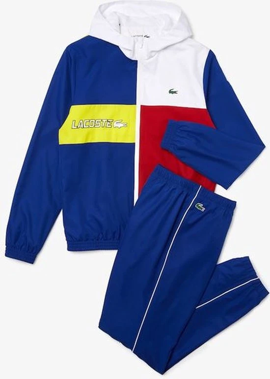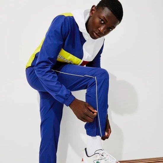 Dit is een Lacoste Sport-trainingspak dat je niet mag missen. Het bestaat uit een ritsjack met colorblock en een effen broek met fraaie contrasterende paspels. Dit lichtgewicht kledingstuk is gemaakt van diamantgeweven taf en heeft een opstaande kraag, steekzakken en een verstelbare elastische tailleband. Een trainingspak dat geschikt is voor elke sport.