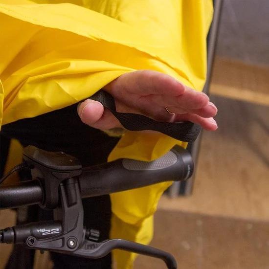 De fietsponcho is gemaakt van waterdicht nylon met afgetapete naden. Uiteraard is hij 100% waterdicht (10.000mm). De fietsponcho is goed ademend en winddicht (8.000g/M²). We hebben hem in het rood, blauw, khaki en geel voor degene die echt wil opvallen in het verkeer. Het materiaal waaruit hij gemaakt is, ventileert goed waardoor je in ieder geval niet bang hoeft te zijn nat te worden van je eigen transpiratievocht.