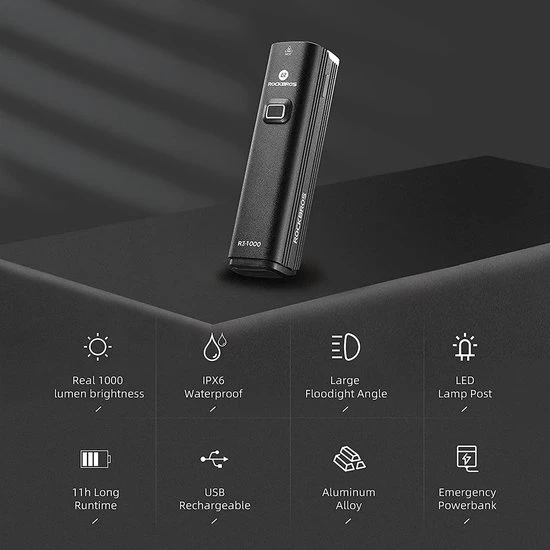5 modi en gebruiksgemak: deze fietskoplamp heeft 5 lichtmodi: 3 verlichtingsmodi (lage bocht 230 lm, heldere 530 lm en super heldere 1000 lm) en 2 knipperstanden (snelle flits en ademende flits). Eén keer drukken om de verlichting in te schakelen of aan te passen