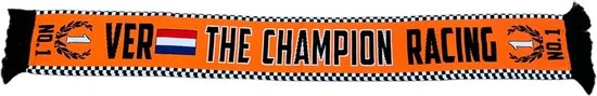Oranje supporterssjaal met de tekst VER The Champion Racing No.1 met rood-wit-blauwe vlag en kransen.