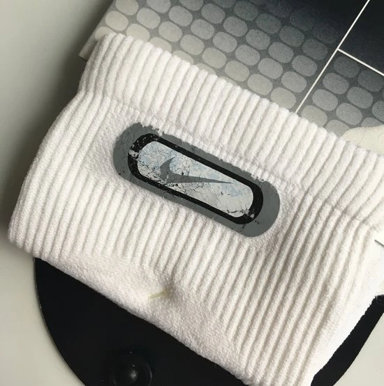 De swoosh op de wreef is geweven in de stof en blijft goed.
