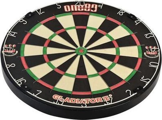 | Verpakkingsinhoud | 1x, Officieel, BDO, dartbord, One80, Gladiator, 3, 1x, Ophangsysteem |