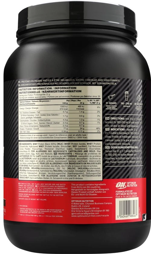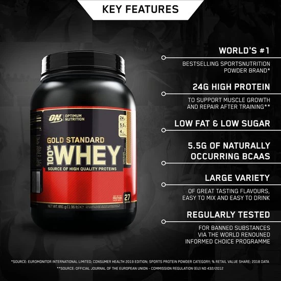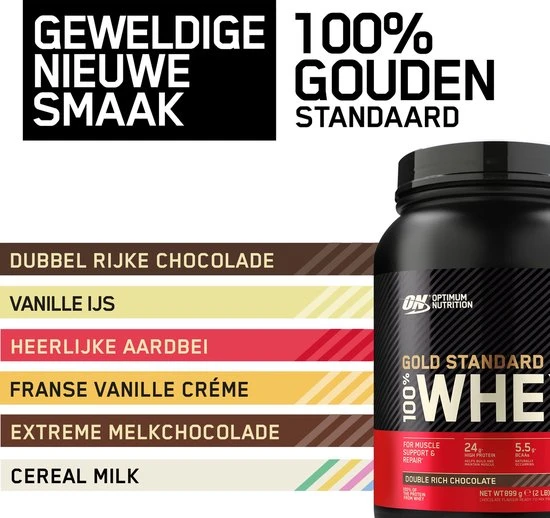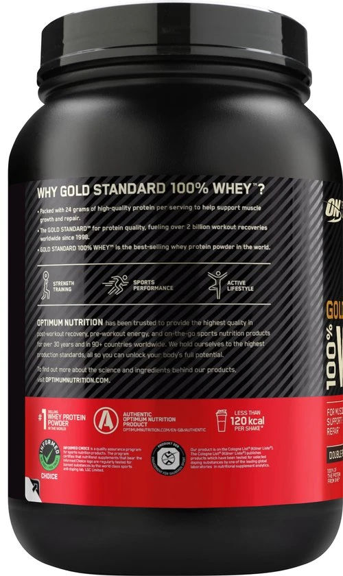 De ongekend populaire Gold Standard 100% Whey van Optimum Nutrition staat al sinds jaar en dag bekend om zijn hoogwaardige kwaliteit. Iedere shake bevat 2 gram pure proteïne en slechts 115 kcal per serving (serving = 1 maatschap à 30 gram).