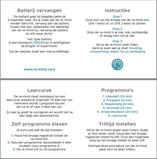 Als de Re-Mind trilt in je zak dan weet je direct: dit is voor mijn houding en ontspanning. Je hoeft er niet over na te denken. Het leidt ook niet af van waar je mee bezig bent. Een goede en bewezen oplossing!