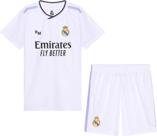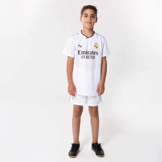 Real Madrid thuis tenue 22/23 Scoor het Real Madrid thuis tenue 22/23 voor kinderen bij Voetbalfanshop! Wie droomt er niet van de koninklijke? Supersterren als Ronaldo, Zidane, Beckham hebben allemaal het witte tenue van Real Madrid gedragen! Geen wonder dat er zoveel fans van Real Madrid overal op de wereld te vinden zijn. Het goedkope Real Madrid voetbaltenue voor kinderen is perfect voor een potje voetbal of om lekker op de bank te dragen! Het tenue is gemaakt van 100% Polyester, hierdoor voelt het lekker licht aan en is het makkelijk schoon te maken. Het voetbaltenue voor kinderen bestaat uit een voetbalshirt en voetbalbroekje. Kenmerken * HERKENBAAR DESIGN: Het iconische Real Madrid logo vind je terug aan de linkerzijde van het shirt. * COMPLEET VOETBALTENUE: Dit Real Madrid thuis tenue bestaat uit een shirt en broekje, klaar om in te bewegen! * COMFORTABEL: Het Real Madrid tenue is gemaakt van 100% polyester. Gemakkelijk schoon te maken en comfortabel om te dragen! * OFFICIEEL CLUBTENUE: Deze Real set hoort bij de officiële Real Madrid merchandise collectie. Daardoor is kwaliteit een garantie. Kampioenen van Europa Real Madrid wist afgelopen seizoen voor de 14de keer de Champions League te winnen! Geen club won zo vaak de Champions League en is misschien wel de grootste club ooit. Gaat het de koninklijke met Karim Benzema, Vinícius Júnior en Modrić dit jaar ook weer lukken om de Champions League naar Madrid te halen? Het Real Madrid thuis tenue zou dan zo maar een legendarisch tintje kunnen krijgen. Het is ook mogelijk om het Real Madrid tenue te personaliseren! Bedruk het shirt met je eigen naam en rugnummer. Of kies ervoor om de naam en het rugnummer van je favoriete Real Madrid speler achterop het shirt te plaatsen. Voordat je het weet heb je een Real Madrid tenue van Benzema, Modrić of Eden Hazard! Andere Real Madrid artikelen kopen? Niet opzoek naar het Real Madrid thuis tenue? Geen probleem! Bij Voetbalfanshop beschikken we over een uitgebreid assortiment Real Madrid tenues (https://www.voetbalfanshop.nl/goedkope-voetbaltenues-kinderen/real-madrid-voetbaltenues/), trainingspakken (https://www.voetbalfanshop.nl/goedkope-trainingspakken/real-madrid-trainingspakken/) en voetballen (https://www.voetbalfanshop.nl/voetballen/real-madrid-voetballen/). Bij voetbalfanshop hebben we alles voor de Real Madrid fans! Officieel Real Madrid thuis tenue Bij Voetbalfanshop verkopen we uitsluitend officiële fanmerchandise van Europa’s grootste voetbalclubs! De merchandise die verkocht wordt valt onder de non-branded merchandise. Non-branded merchandise beschikt over alle officiële (club)kleuren en logo’s. Deze artikelen zijn ook te vinden in de fanshops van de desbetreffende clubs. Wilt u meer weten over non-branded merchandise, bekijk dan ons blog: Officiële fanmerchandise, hoe zit dat nou? (https://www.voetbalfanshop.nl/blog/officiele-fanmerchandise-hoe-zit-dat-nou/) Of neem contact op met de klantenservice van Voetbalfanshop!