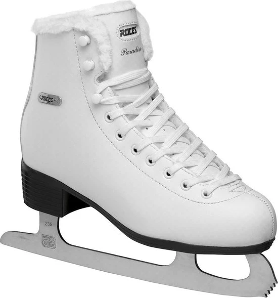 De Roces Paradise Eco-Fur is een mooi afgewerkte klassieke witte kunstschaats met een kunstlederen schoen. De stevige schoen heeft een comfortabele en zachte voering van synthetisch bont en is voorzien van een anatomisch voetbed. De tong is aan de binnenzijde eveneens voorzien van synthetisch bont voor maximaal comfort en de veterhaken zijn van metaal voor extra duurzaamheid. Het mes is gemaakt van roestvast staal. Kortom, de ideale kunstschaatsen voor recreatieve en beginnende schaatsers.
