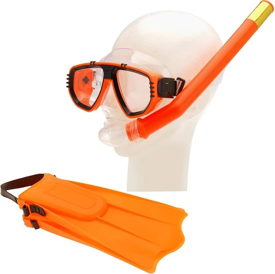 om te snorkelen in de zee of in het zwembad; bevat 1 xDuikbril, 1 x snorkel, 1x Zwemvliezen verstelbaar op de hak Geschikt voor: kinderen van 6 tot 12 jaar met een maximale lengte van 1.50 meter