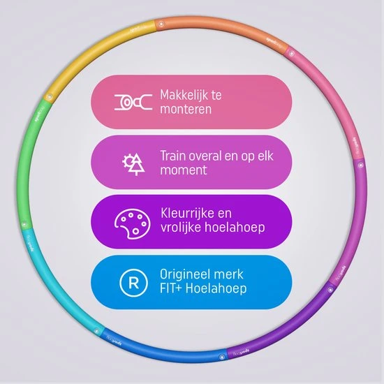 - Fit+ Happy fitnesshoelahoep is verkrijgbaar in 3 gewichten/niveaus