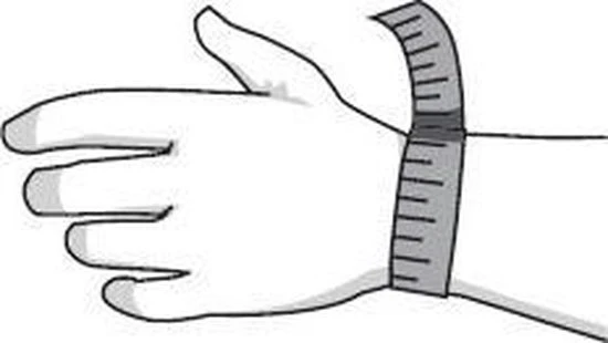 Voor de juiste maat meet u de omvang van de pols (zie afbeelding).