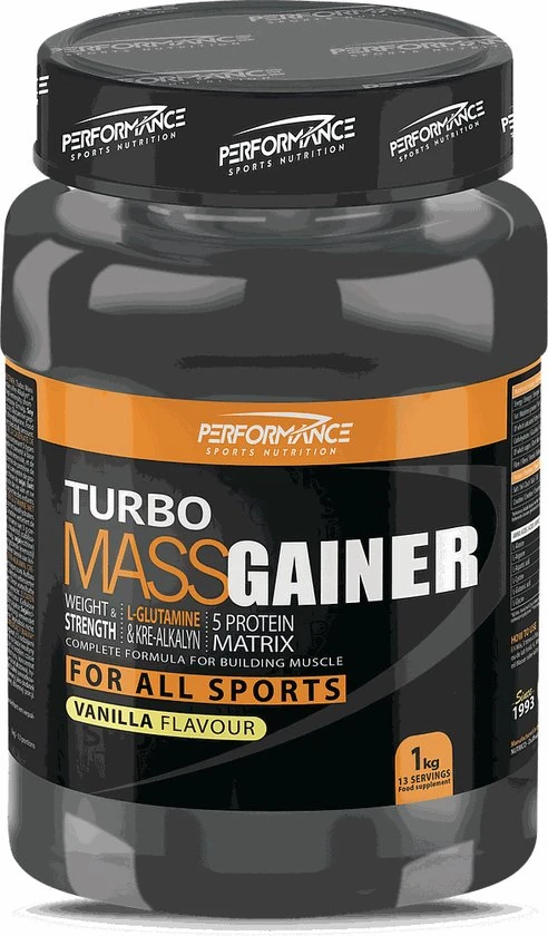Performance heeft in deze gainer 3 koolhydraat bronnen verwerkt. Idiaal voor een constante energielevering op korte, middellange en lange termijn. Om de spieren sneller te kunnen laten herstellen vind je een combinatie van 5 superieure eiwitbronnen in de Turbo Mass Gainer waardoor je lichaam over alle noodzakelijke aminozuren zal beschikken en het is verrijkt met L-Glutamine peptide. Het aminozuur voor celopbouw, spiergroei en spierherstel. Om de glutamines nog beter te laten verwerken door het lichaam is peptide toegevoegd. En alsof het nog niet genoeg is bevat Turbo Mass Gainer ook nog eens Kre-Alkalyn® om intenser te kunnen sporten en nadien je spieren te beschermen tegen overvloedige melkzuurophoping gedurende de training of de wedstrijd. Kre-Alkalyn® biedt je alle voordelen van creatine zonder de neveneffecten.