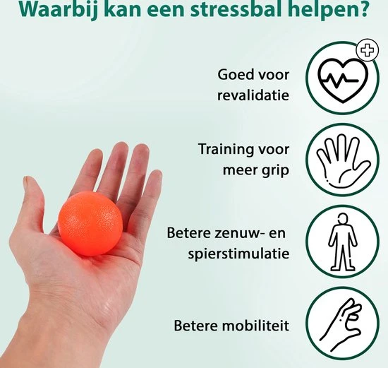 Wist je dat een stressbal ook goed voor je fysieke gezondheid is? Met zenuw- en spierstimulatie worden specifieke spieren aangesterkt en kun je doelgericht trainen voor herstel. Ideaal tijdens het revalideren en trainen van meer grip.