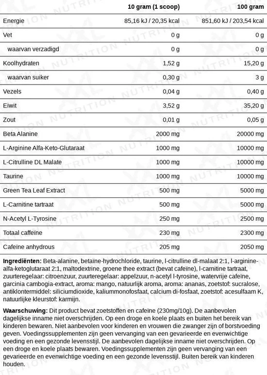 Ladies opgelet; XXL Nutrition introduceert een speciaal ontwikkelde Pre Workout voor vrouwen (). Deze krachtige pre workout kun je nemen voor ieder type training; van een zware krachttraining tot een explosieve sprinttraining. Women’s Pre Workout van XXL Nutrition bevat krachtige ingrediënten als Beta Alanine, L-Citrulline en Taurine. Tevens voorziet één serving (10 gram) je van maar liefst 230 mg cafeïne. Women’s Pre Workout van XXL Nutrition heeft een heerlijk frisse Fruit Punch smaak. Wat wil je nog meer?!